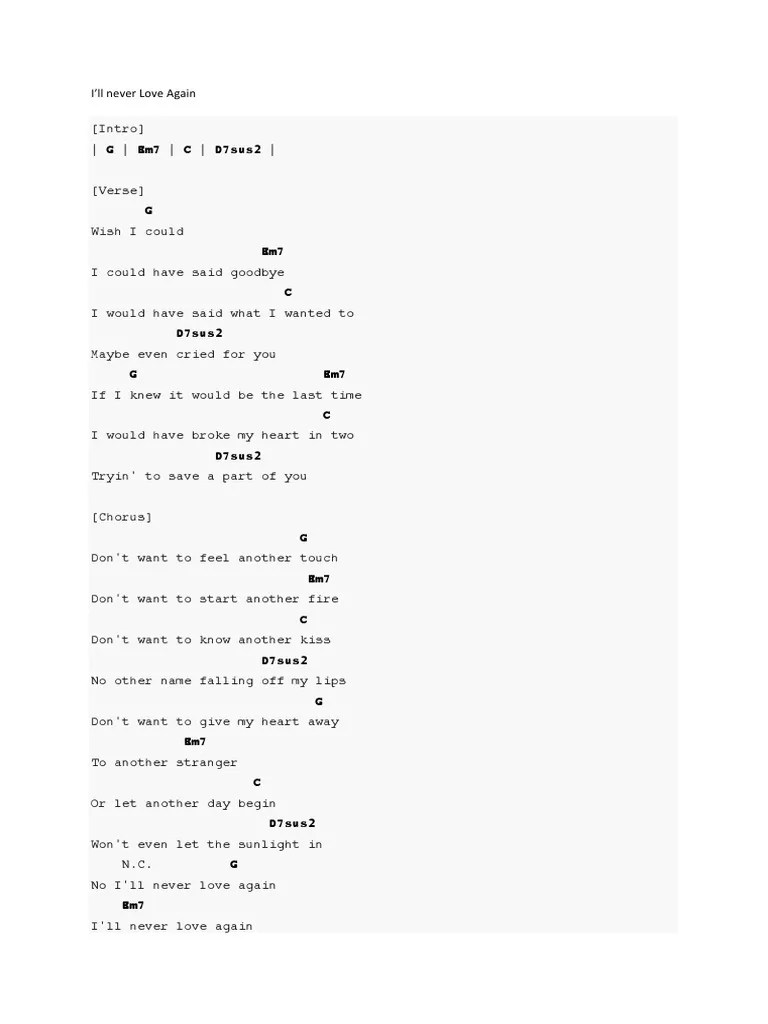 10 Steps To Mastering The Guitar FREE Training! Click here: . I Will Never Love Again Chords are a topic that is being searched for and appreciated by netizens today. You can Save the I Will Never Love Again Chords here. Download all royalty-free pics. Lady Gaga - I'll Never Love Again EASY Guitar Tutorial With Chords / Lyrics, Chords: 0:03 Strummingpatterns: 0:54 Song Being Played: 2:06 Lady Gaga - I'll Never Love Again No capo Chords: G: 320003 .